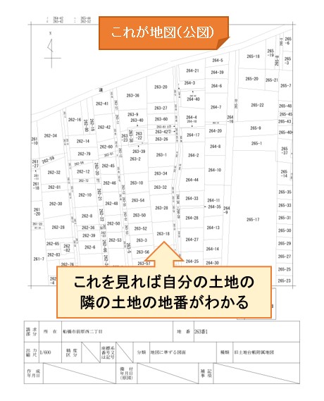 自分の土地の地番がわかっている方は、「地図」を見れば、自分の土地の隣の地番がわかります。