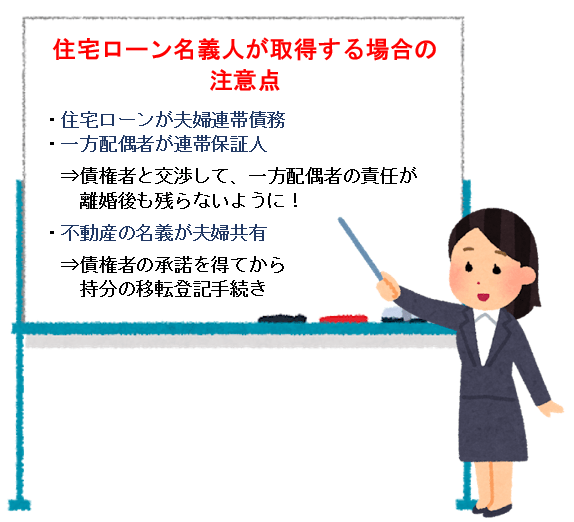 - 住宅ローンの名義と支払い義務は離婚では自動的に変更されない